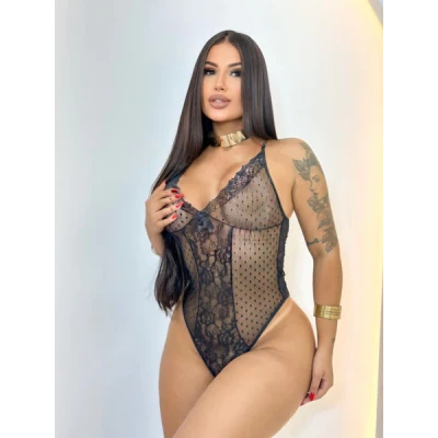 Body Renda sem Bojo Tule Feminino Rendado Lingerie Transparente Alça Regulaveis Moda Intima