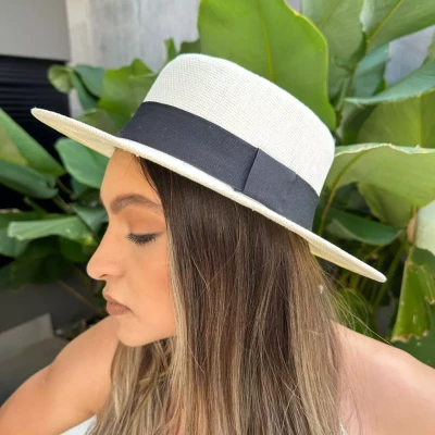 CHAPÉU FEMININO PARIS PALHETA PRAIA PISCINA ELEGANTE ABA MÉDIA