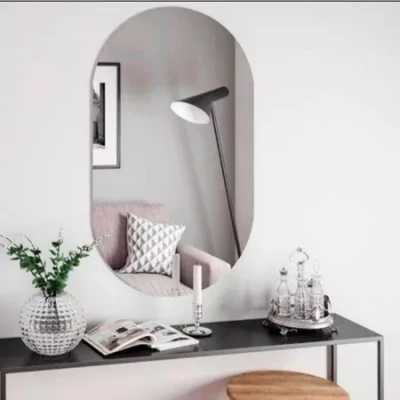Espelho Grande De Parede Oval Com Led Orgânico Banheiro Sala Quarto Luz Quente E Fria