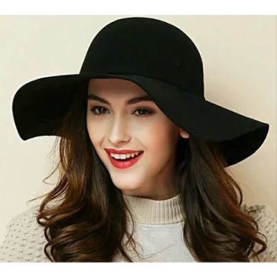 chapéu feminino floppy de feltro ploiester aba grande maleável