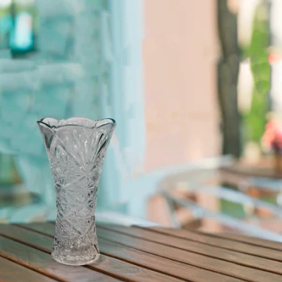 Vaso De Vidro 24cm Decorativo Alto Relevo Resistente Arranjo Flores